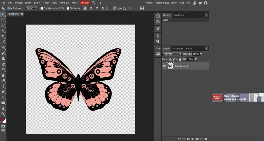 Head over to Photopea, a free browser-based design tool.